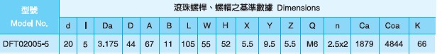 DFT2005滾珠絲桿參數(shù)